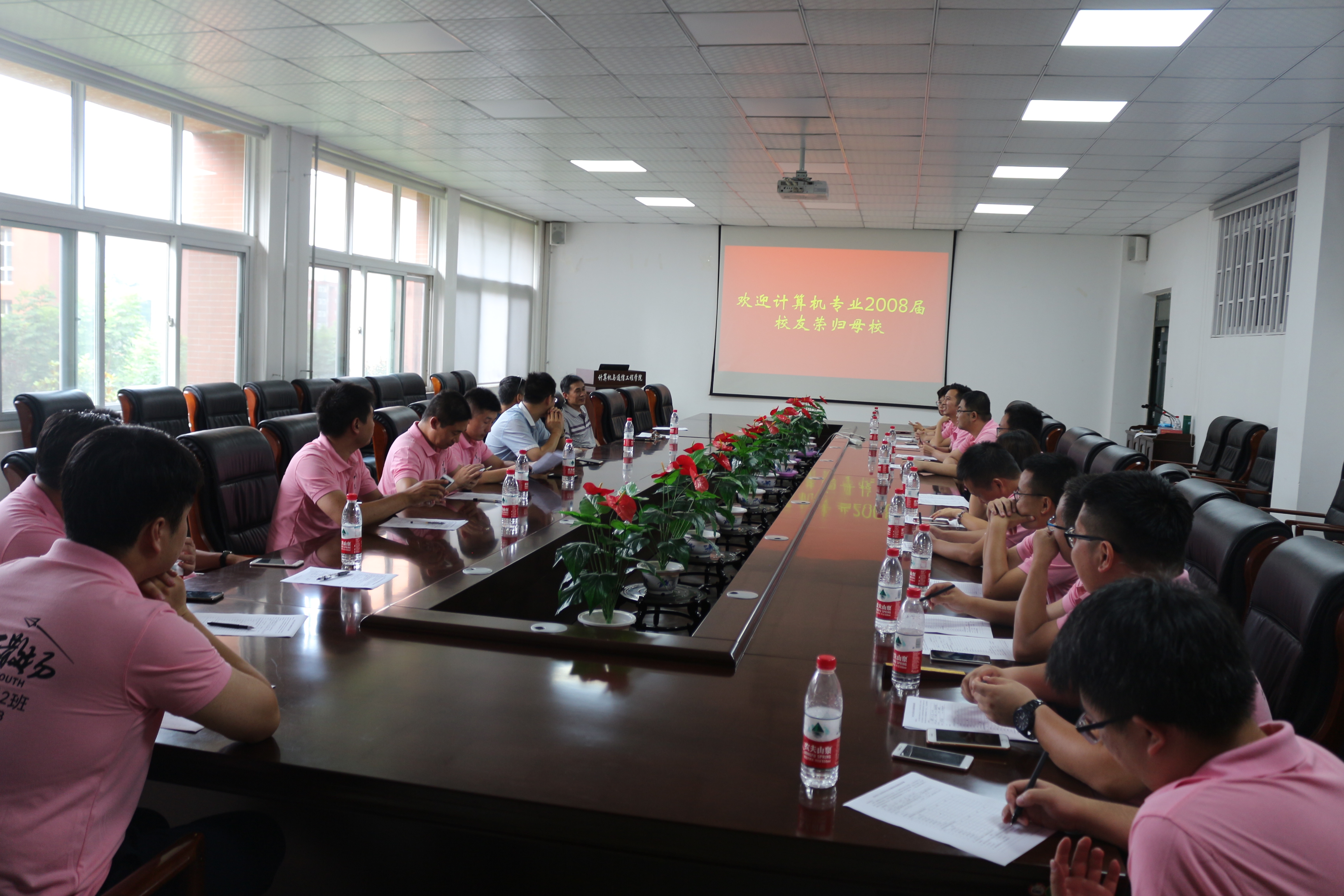 光阴荏冉,岁月如歌,炎炎夏日,鸟语蝉鸣,烈日的炙烤阻挡不了校友重返母校的激动和盼望,怀着对母校的眷恋与对同窗相逢的期盼,7月19日,计算机与通信工程学院(电子信息工程学院)2008届计算机科学与技术专业校友在毕业十年之际重返母校,计算机学院党总支书记黄道颖、副院长金保华、分团委书记沈高峰与返校校友在计算机学院楼213会议室进行亲切座谈,座谈会由分团委书记沈高峰主持。