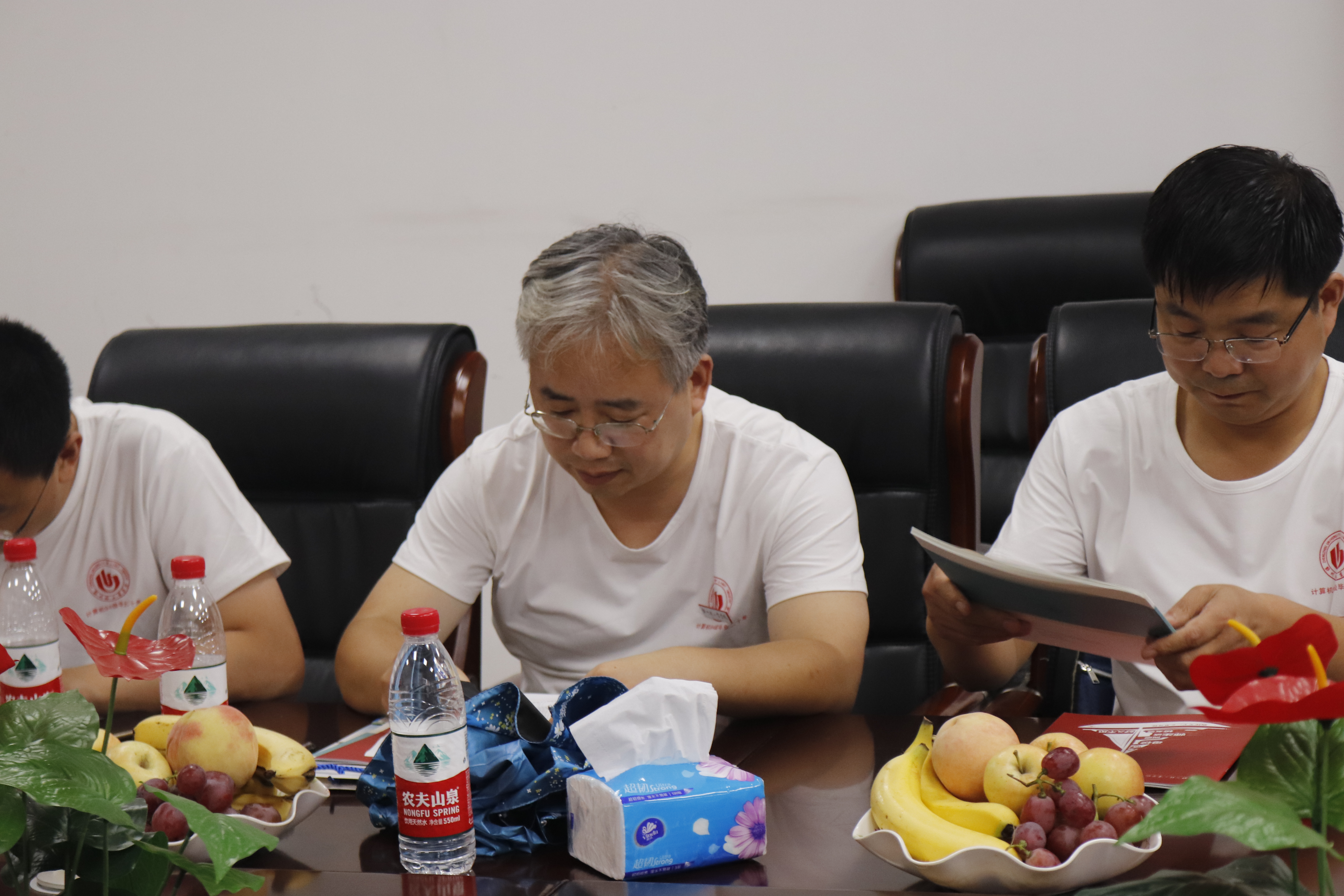 时光荏冉,岁月如歌,清凉夏日,鸟语蝉鸣,怀着对母校的眷恋与对同窗相逢的期盼,8月18日,计算机专业1998届校友在毕业二十周年之际重聚母校,共叙友情。计算机与通信工程学院(电子信息工程学院)在学院楼大厅举行了校友石捐赠仪式,并在学院213会议室与校友们亲切交流座谈。郑州工程技术学院甘勇副校长(原计算机学院院长)、郑州升达经贸管理学院信息工程学院李学桥院长(原计算机学院党总支书记)、校人事处张旭虹处长(原计算机学院党总支副书记)、校信息化管理中心李霞主任(原计算机学院实验室主任),计算机学院党总支黄道颖书记、张素智副院长、金保华副院长、党政办陈建华主任等领导班子成员及相关老师、嘉宾参加相关活动,捐赠仪式和座谈会由分团委书记沈高峰主持。