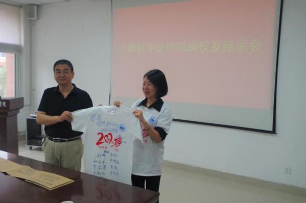 弹指一挥二十载,桃李携手师生情,同窗三载再聚首,展望未来话今朝。10月14日,计算机专业的98级校友返校共聚一堂,追忆同窗趣事、畅谈人生感悟、展望美好未来。并在学院213会议室与校友们亲切交流座谈,校人事处张旭虹处长(原计算机学院党总支副书记)、校信息化管理中心李霞主任(原计算机学院实验室主任),计算机学院党总支黄道颖书记、张素智副院长、金保华副院长、党政办陈建华主任等领导班子成员及相关老师、嘉宾参加相关活动,座谈会由学工办主任司丽娜老师主持。 会议伊始,黄书记首先代表学院全体师生向返校的校友表示热烈欢迎,并对校友如今取得的成就表示衷心祝贺,对校友们心系母校,感恩母校表示诚挚感谢。然后,黄书记向校友们介绍了学院到目前的发展历程与取得的佳绩,以及现今学院和学校状况。并表示广大校友是学校的骄傲,学校每一步发展都离不开校友的关心和支持,希望广大校友能够共同促进学校和学院各项事业的健康蓬勃发展。接着,98届计算机专业的辅导员张旭虹老师在发言时对校友们深情的说,今天和校友们重逢,仿佛又重现了大家上学的情景,你们在学校是优秀的,毕业以后又创造了优异的成绩,作为老师为你们感到骄傲与自豪。 随后,由校友代表刘郁上台发言并转赠校友亲笔签名的文化衫,以此表示对母校快速发展和取得的成绩感到骄傲和自豪,对学院老师当年的谆谆教导表示深深的谢意,并表示会一如既往地关心、关注、支持学校的建设和发展。最后,校友们分别发言介绍自己的学习、工作及生活状况,聊叙同学情、师生谊。此外,校友们还分别结合各自工作的领域,就拓展信息交流平台、深度合作等方面作了深入讨论,并表示如果母校有需要自己的地方,一定会不遗余力的为母校出力。活动期间,校友们重返东风校区,重回宿舍楼、食堂、图书馆,回忆曾经的最快乐大学时光。 校友在追忆自己青葱年华的同时,忍不住感叹轻院计算机学院多年来的变化和发展。薪火相传,生生不息,才是一所大学不断进步的不竭源泉。相信在一代又一代计算机人的辛勤耕耘下,计算机学院一定会再稳步向前,我们也有理由相信未来计算机学院必定会给我们更多期待与惊喜。 |