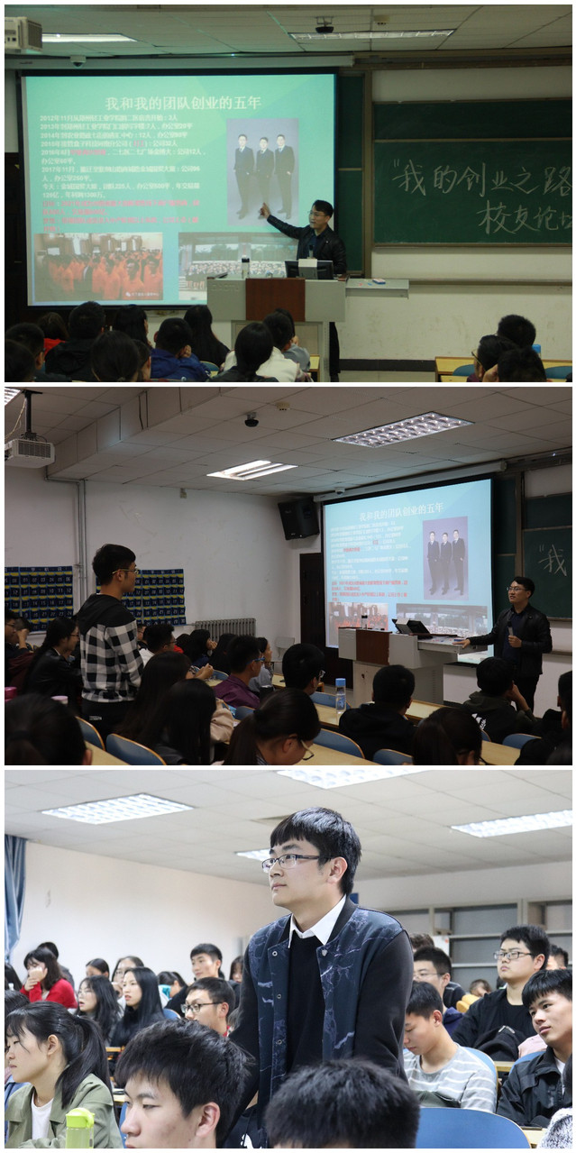 本次论坛主讲人武东龙是我院2016届毕业生,现为盒子科技河南总经理。武东龙用幽默的语言为同学们讲述了自己近五年来的主要创业成果,并结合实例重点讲解了创业过程中遇到的问题,以及解决问题的思路和方法。针对同学们提出的如何选择创业项目这个问题,武东龙总结到必须结合市场需求,紧随互联网的发展脚步,把握机会,大胆创新,并结合自身的专业特长进行选择。创业学长的现身说法和切身体会非常具体形象,很有说服力,深受同学们的认同和欢迎。