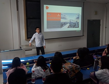 交流会伊始,洪雨晨以留学初衷为切入点,引出同学们现阶段在出国选择上存在的疑惑和困扰,引起同学们的广泛共鸣。接着,他分别介绍了本科阶段在英国爱丁堡龙比亚大学和研究生阶段在谢菲尔德大学的学习情况,谈到留学最大的收获在于培养独立自主的精神和处理问题的能力。他结合海外留学的经历,介绍了国外学习模式、语言适应等方面的经验,分享了对国外文化、人际交往的切身体会。在最后的互动交流环节,他就雅思学习、时间管理、出国流程等方面提出了中肯的建议,并针对同学们提出的问题一一进行耐心解答。