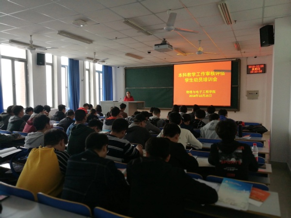 为确保本科教学审核评估工作的顺利开展,督促同学们掌握本科教学工作审核评估的基本知识。10月24日至25日,物理与电子工程学院各班召开了本科教学工作审核评估学生动员培训会。党总支副书记李玲、各年级辅导员以及全体本科生参加了动员培训会。