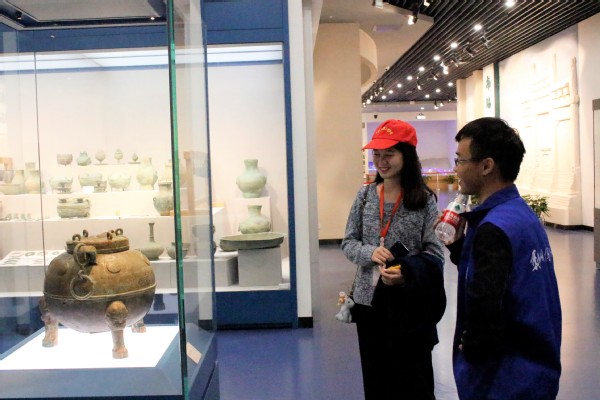 郑州博物馆是一座综合性博物馆,承担着文物收藏、陈列展览、宣传教育、科学研究等多种职能,是河南省爱国主义优秀教育基地及展示郑州悠久历史和灿烂文化的重要窗口。社践部同学们一进展厅就被陈列的各类青铜器和玉器所吸引。琳琅满目的古玩、精美绝伦的字画,源远流长的历史文化深深震撼了在场同学们。参观期间由社践部的学长学姐们为同学们做了博物馆的讲解介绍,使同学们更好地了解历史留下来的文物和遗迹。活动结束,同学们纷纷表示作为理工科学生,经常参观博物馆对自己的人文素养的培养将会有很大的帮助,既对历史有了更多的了解,又近距离真切的看到了文物,希望学院能经常组织此类观摩活动。最后同学们进行拍照留念。
