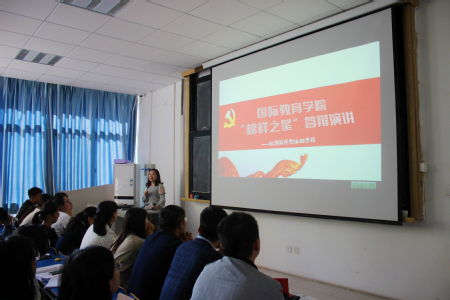 为进一步发挥先进典型的示范引领作用,大力营造崇德向善、见贤思齐的良好氛围,国际教育学院于10月29日中午在教二楼230举办2018年“榜样之星”暨十佳“轻院之星”、十佳“自强之星”初评演讲答辩会。国际教育学院党总支副书记李锐杰老师、全体辅导员老师以及近200名学生参加了活动。