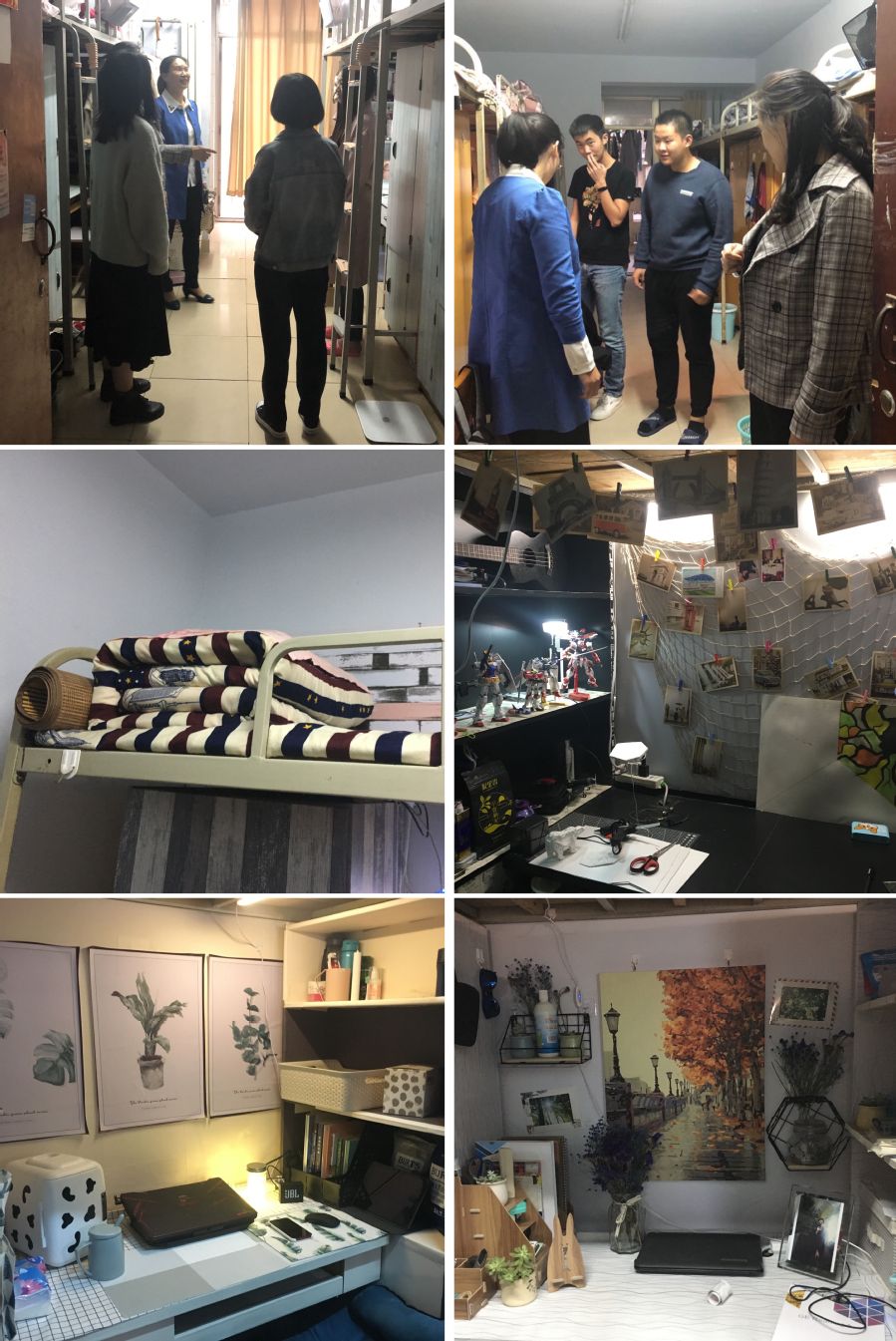 本次检查分别从宿舍文明行为、宿舍精神风貌、宿舍卫生情况和宿舍学习氛围对学生进行评价,尤其是立项的特色宿舍进行了评分记录。在宿舍走访过程中,老师们仔细查看宿舍的物品摆放及安全、卫生问题,悉心叮咛同学们要注意宿舍安全,保持宿舍的干净整洁,禁止使用违规电器。整体的走访工作进行得很顺利,大多数宿舍卫生良好,其中有个别宿舍存在物品摆放不整齐,室内通风不畅的现象,同学们表示会积极整改。