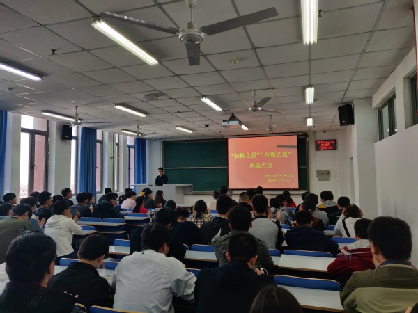 为了展现我院学生自立自强、积极进取的精神风貌,充分发挥先进典型的示范引领作用。2018年11月1日中午,物理与电子工程学院在二教704教室举行了十佳“轻院之星”、十佳“自强之星”评选大会。党总支副书记李玲、辅导员周芳华、王冠玺以及100余名学生代表参加了本次大会。