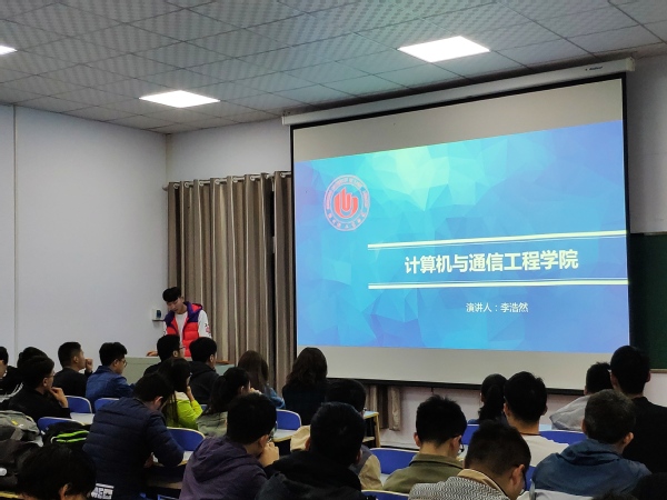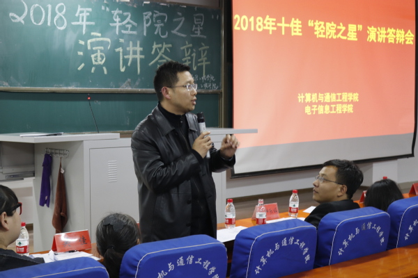 为了展现我院学生自立自强、积极进取的精神风貌,充分发挥先进典型的示范引领作用。11月5日晚19:30,计算机与通信工程学院(电子信息工程学院)在计算机楼217、118教室和禹州实习实训基地分会场举行了十佳“轻院之星”、十佳“自强之星”演讲答辩会。分团委书记沈高峰老师、学工办主任司丽娜老师、全体专兼职辅导员以及16、17、18级学生代表参加了本次大会。