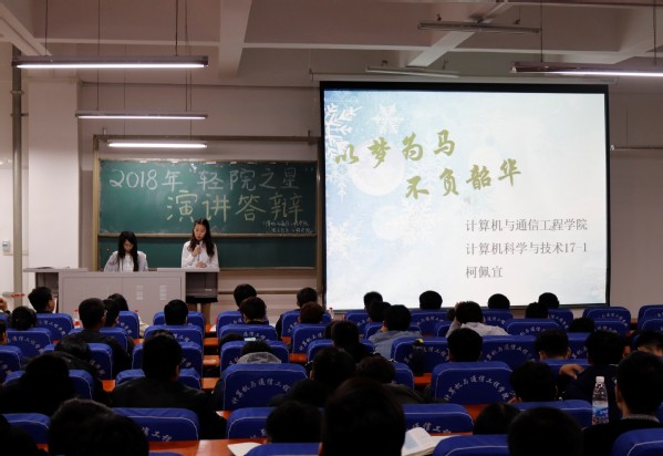 此次评选共有130多名优秀学生踊跃报名,经过辅导员审核初选产生优秀学生20名进行演讲答辩。大会伊始,主持人首先对双十佳评选活动的目的和意义进行了阐释,并介绍了评选规则和比赛流程。随后,各位答辩选手通过PPT展示了自己的青春风采。选手们当中有勤奋好学、成绩优异、学科竞赛多次获奖的学霸;有甘于奉献、为同学们热心服务、热衷于社会实践的学生干部;有不惧贫寒、刻苦钻研、积极上进的学生典范。他们的精彩展示获得了大家的掌声与肯定。最后,分团委书记沈高峰老师对本次答辩做精彩点评,并希望低年级的同学能戒骄戒躁,努力向优秀的学长学姐看齐,做更好的自己。通过这次演讲答辩选出计算机学院十佳“轻院之星”和十佳“自强之星”各十名。学院将会在这些优秀的候选同学中,综合初评和演讲答辩环节的成绩,择优向学校推荐十佳“轻院之星”和十佳“自强之星”。