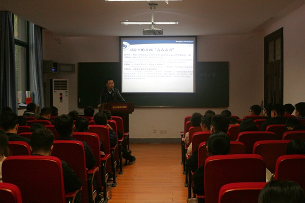 课上,宋文军老师向同学提出了“什么是三观?三观有什么作用?”等问题,并结合自身实际谈及生活,学习等方面,介绍了习近平总书记从2013-2015年的五四“青春寄语”,讲述伟人事迹,希望让同学们通过学习明白习近平总书记对广大青年的殷切期望。接着,宋书记以“作为当代大学生,同学们该如何践行习近平总书记的青春寄语”向同学们发出号召,希望同学们能好好思考,坚定理想信念,扣好人生的第一粒扣子,主动学习,自主学习,勤于实践,勇于创新,关心国家,甘于奉献。