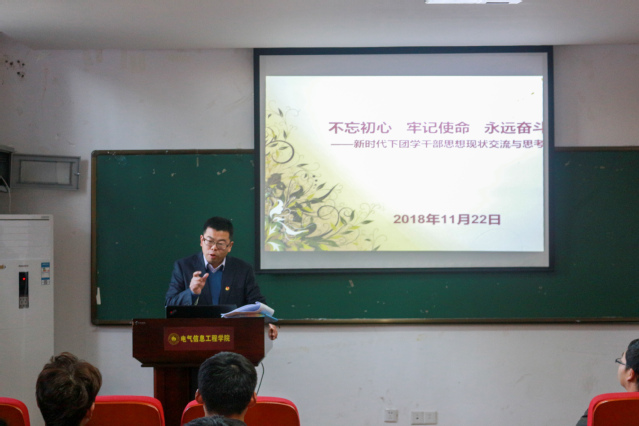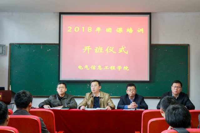 为深入贯彻落实习近平新时代中国特色社会主义思想和党的十九大精神,贯彻落实全国、全省高校思想政治工作会议精神和《中长期青年发展规划(2016—2025年)》有关要求,按照学校团委统一部署,电气信息工程学院2018年团课培训于11月22日下午15:30举办开班仪式。校团委书记葛勋老师,副书记景志勇老师,学院党总支副书记宋文军老师出席仪式。仪式由分团委书记许海龙主持。