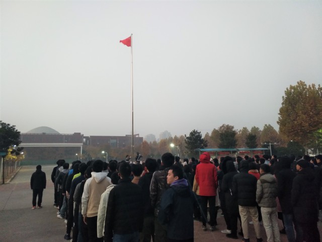11月26日6:50,禹州实习实训季度举行升旗仪式暨纪念“一二·九” 运动83周年主题活动。电气信息工程学院、计算机与通信工程学院、材料与化学工程学院、软件学院、艺术设计学院、建筑环境工程学院等实习实训学生参加仪式和活动。仪式由电气工程及其自动化专业16级02班学生谢鑫主持。