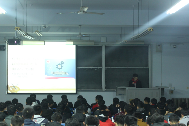 晚7点30分,活动正式开始。首先,由主持人上台向大家介绍本次班旗设计大赛比赛规则和评分标准。接着各班级代表按照抽签顺序上台进行演讲及班旗展示,之后由评委们根据班旗设计的内容,可操作性,意义和班级代表的演讲答辩进行评分。班旗展示环节中,各个班级的班旗设计各有千秋,难分伯仲,都有着团结一致,开拓进取的寓意,表达了对班级未来的美好展望,很好地彰显了每个班级的特点。最后,机制18-01班凭借其独树一帜的设计风格,简洁大方的外观夺得一等奖。