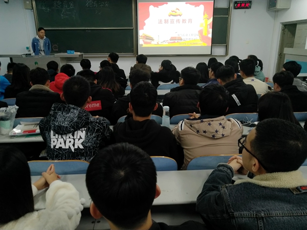 国因法律而昌,法律因人而贵。为了提高同学们的法律意识和法制观念,帮助他们学习并懂得使用法律这个有力的武器来维护自己的合法权益,电气信息工程学院于2018年11月29日在教三楼804开展了法制教育宣传活动。