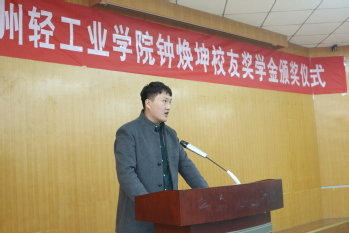 12月13日,郑州轻工业学院钟焕坤校友奖学金颁奖仪式在教三楼103室举行。电气信息工程学院91届校友、广东肇庆高要市金田电热制品有限公司总经理钟焕坤先生,学院党政班子、钟焕坤校友奖学金获得者及200余名学生代表参加仪式。