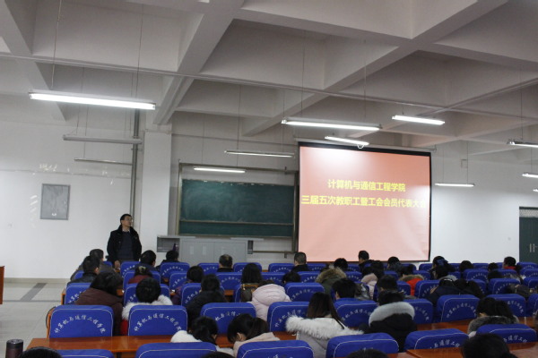 2019年1月10日下午,计算机与通信工程学院(电子信息工程学院)在计算机楼217室,召开学院三届五次教职工暨工会会员代表大会,学院全体教职工参加大会。