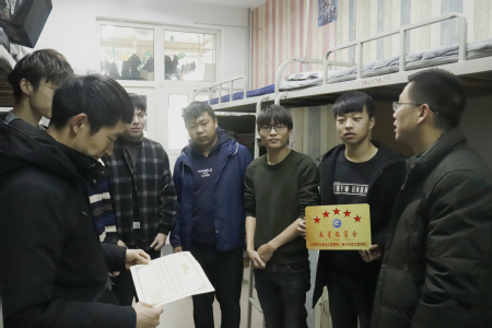 1月10日中午,计算机与通信工程学院(电子信息工程学院)开展大学生“五星级宿舍”挂牌活动,表彰在我院举行的大学生宿舍文化活动中荣获“五星级”称号的学生宿舍。学院分团委书记沈高峰老师及各专兼职辅导员对“五星级宿舍”进行挂牌表彰。