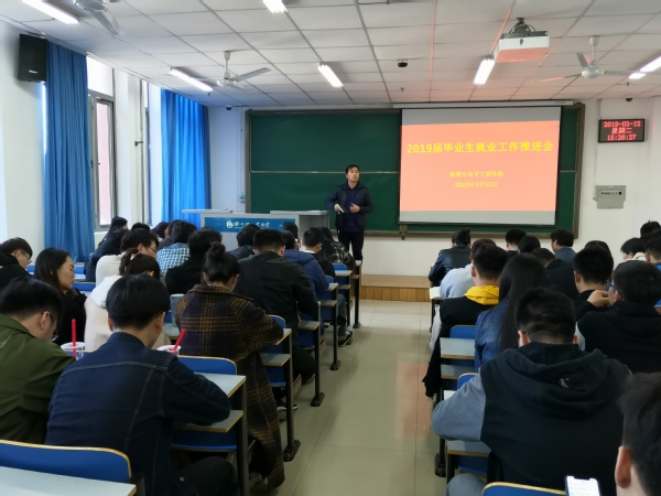 3月12日下午,物理与电子工程学院在二教楼704召开2019届毕业生就业工作推进会。学院党总支书记李玲、负责就业的王冠玺老师、2019届全体毕业生参加了会议。