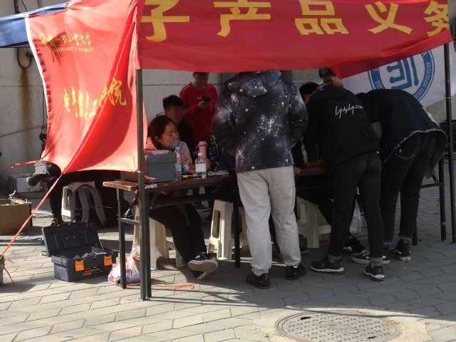 下午2:00,双创工作室家电义务维修小队成员已经将活动现场布置完毕,随后便陆续收到了许多需要维修的家电。双创工作室成员热心地接待每一位同学,认真进行信息登记并详细了解电器存在的故障,仔细分析电器故障的原因,使用万用表、示波器等工具耐心检测维修,同时解答同学们提出的各种问题,并向他们介绍电器的正确使用方法和相关注意事项。