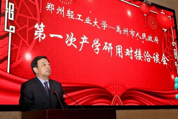 3月14日上午,郑州轻工业大学--禹州市人民政府第一次产学研用对接洽谈会在禹州举行。郑州轻工业大学党委书记俞海洛,校长赵卫东,党委副书记马英,副校长方少明张志坚;许昌市政协副主席李俊恒,禹州市委书记王宏武、市长范晓东、市委副书记陈涛、市人大主任崔纪安、市政协主席赵书欣及相关领导干部出席洽谈会。禹州市26个乡镇(办)党政正职、市直局委(办)行政正职、100家规模以上企业负责人,我校各职能处室负责人、各相关学院负责人及教师代表参加洽谈会。
