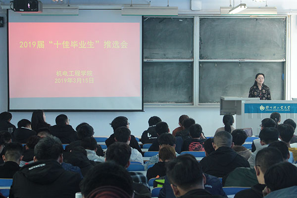 为进一步树立努力学习、积极实践、勇于创新的学生楷模,充分发挥先进典型的示范引领作用,2019年3月15日中午,机电工程学院在东一楼200举行了“十佳毕业生”推选会。机电工程学院党总支副书记孙琳、全体辅导员和各班级学生代表参加了本次大会。