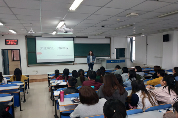 活动过程中,各支部通过观看两会开幕式、闭幕式、讲解PPT、讲述“两会”故事等方式介绍了两会内容,传达了“两会”精神。公共事业管理17-01班团支部组织同学们学习政府工作报告以及党的方针、路线等相关内容,引导同学们更深入地了解国情。法学17-01班团支部通过PPT讲解进行“两会”宣讲,学习“两会”精神,并围绕“两会”热点及“如何做一名合格团员”话题展开讨论,大家结合自身实际踊跃发言,发表对“两会”精神的学习心得体会,展望国家未来发展。