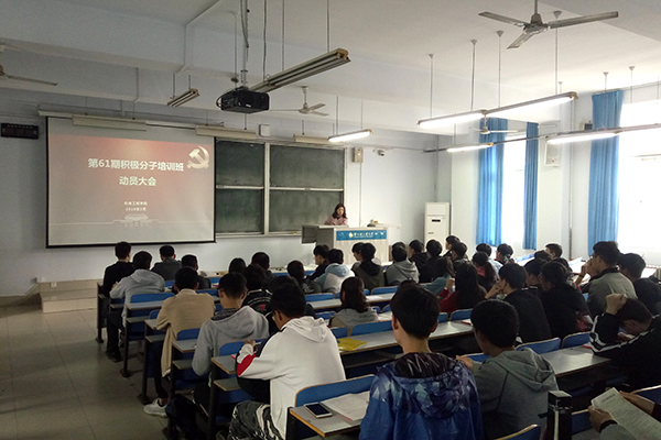 2019年3月21日中午,机电工程学院在东一楼200举行“坚定理想信念,矢志实践奉献”入党积极分子培训动员会,负责党课老师和我院参加学校第61期入党积极分子培训班81名学生参加大会。