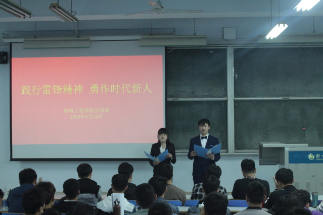 为大力弘扬雷锋精神,引导学生做一名对祖国、对人民有用的人,机电工程学院分团委于3月26日在东一楼200举办了以“践行雷锋精神,勇作时代新人”为主题的诗歌朗诵活动,16、17、18级近200名学生代表参与了本次活动。