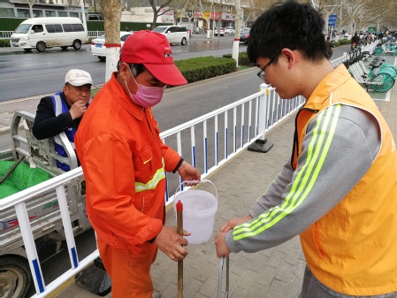 下午两点半,志愿者们集合完毕,很快就投入到志愿服务中。志愿者们走上街头,来到环卫工人身边,接过他们手中的工具,或捡拾垃圾,帮助打扫街道卫生,或帮忙摆放停放杂乱的共享单车,或帮忙擦拭公交站牌,让环卫工人有了难得的休息时间。环卫工人们连声感谢,在交流中,进一步表示了对同学们学习和生活情况的关心,同学们十分感动。活动中,同学们体会到了环卫工人们的工作的辛苦,也感受到了帮助他人的快乐,用自己的实际行动诠释着当代“雷锋精神”。