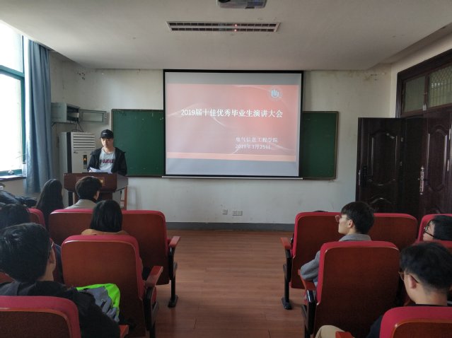 为表彰我院品学兼优、表现突出的优秀毕业生,树立努力学习、积极实践、勇于创新的学生楷模,充分发挥先进典型的示范引领作用,激励广大青年学生向身边的榜样学习,电气信息工程学院于2019年3月25日中午12时在西二楼202举办了2019届十佳优秀毕业生演讲大会, 全体辅导员以及院学生会学工服务中心工作人员和18级各班学生代表参加了此次大会。