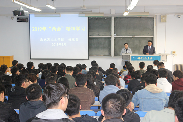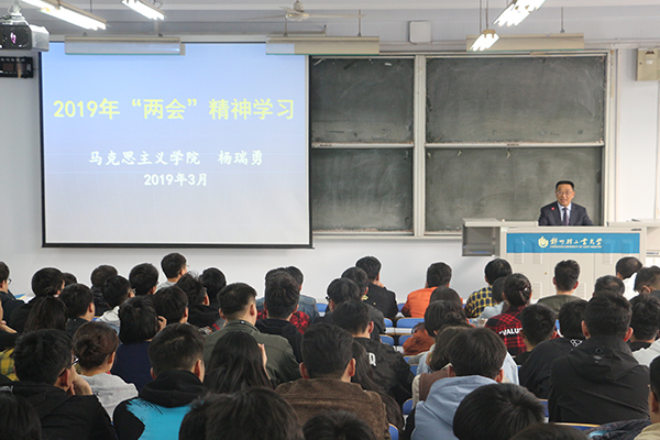 为进一步宣传学习“两会”精神,教育和引导学生增强“四个意识”,坚定“四个自信”,坚决做到“两个维护”,2019年3月28日下午,在东一楼200,马克思主义学院杨瑞勇老师应邀为机电工程学院做“两会”精神宣讲报告。我院党总支副书记孙琳、辅导员、学生党员和入党积极分子参加了此次宣讲。