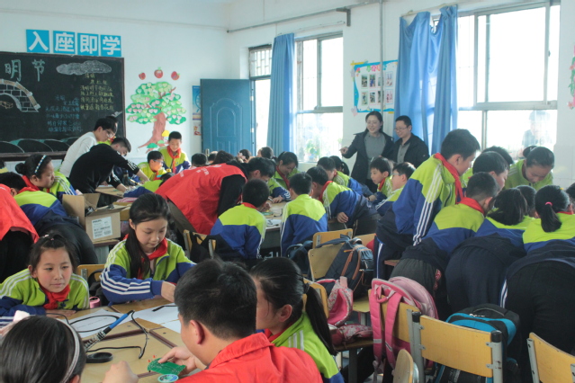 下午15:20,志愿服务活动正式开始,此次活动采用集中讲授与分组讨论的形式,首先由支部书记费致根老师以苹果公司创始人乔布斯的名言“stay hungry, stay foolish”开启整个活动:(1)好奇心在科学探索道路上的重要性。以牛顿发现万有引力为例,论述了保持一颗好奇心的重要性。(2)如何保持一颗好奇心?要勇于尝试新的事物,要善于发现新的现象,要乐于探究事物规律,勇于创新实践。(3)介绍了3D打印机、智能循迹小车的工作原理。接着进入学生提问环节,大家踊跃发言,纷纷畅谈自己是如何利用自己的好奇心发现一些有趣的科学现象,并就3D打印机的应用及发展未来提出了很多种可能与设想。最后在分组讨论环节,支部党员、志愿服务队的成员们走进各个小组,与小学生近距离接触,交流科学课堂的学习体会,指导他们自己动手组装智能循迹小车,粘贴循迹轨道,调试循迹效果。对于性格腼腆的小朋友,队员们还主动与他们交流,让这些孩子亲手去触摸循迹小车,看着小车沿着预设的轨道行驶,孩子们脸上露出了欣喜和激动的表情。这些都加深了小朋友对科技的认识、开拓了小朋友的视野、也激发了他们浓厚的科技兴趣,从而为大家从小养成追求知识、科学和真理的习惯,成为未来的设计者和创造者奠定基础。