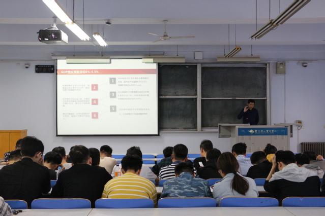 此次讲堂活动,费致根老师分别从“认识‘两会’、学习‘两会’、思考‘两会’”三个方面向大家介绍了全国“两会”的概况及主要议程,并用专业知识引出生动的例子来详细讲解了十三届全国人大二次会议“政府工作报告”的主要内容、亮点和特点,费老师还带领大家一起学习了习近平总书记在“两会”期间的重要系列讲话精神,并从专业角度分析了“两会”精神对于机械领域发展的指导作用,鼓励同学们充满干劲地投入到科研学习中去。费老师的报告深入浅出,生动形象,受到学生们的欢迎和喜爱。