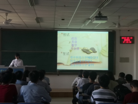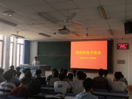 为进一步加强我院学风建设,帮助学生更加充分的认识考研,明确自身的奋斗目标,物理与电子工程学院于5月10日下午在二教楼704举办了“放眼未来 成就自我”考研经验交流会。我院2015级成功考取硕士研究生的学生代表,2016、2017级学生参加了此次活动。