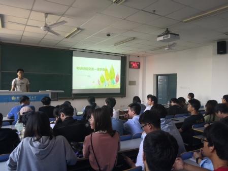 李旭、宋方圆等五位以优异成绩成功考取研究生的学生代表进行了考研经验分享,他们结合自身考研经历和心路历程,就考研学校专业的选择、时间管理、考试准备以及考研心态等方面进行了详细讲解和指导。在随后的互动交流过程中,同学们结合自身的疑惑,踊跃发言提问。学生代表们结合自己在学习和生活中的经验及感悟,耐心细致地回答了大家的问题,交流会现场气氛活跃,同学们认真聆听,呈现出良好的学习氛围。