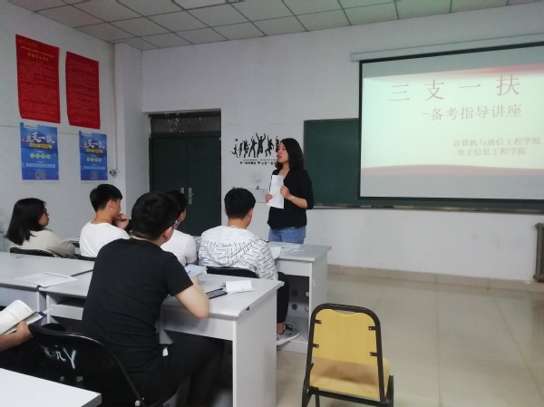 计算机与通信工程学院(电子信息工程学院)于5月8日晚7点在计算机楼109室举行了“三支一扶”(支农、支教、支医、扶贫) 招募宣讲会。我院15级、16级、17级部分学生参加了此次宣讲会。