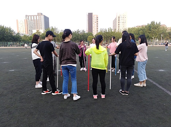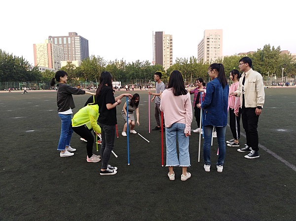 活动以户外素质拓展的形式,依次开展了“自我介绍”“心有千千结”、“不倒森林”等活动,使同学们在活动中相互熟悉,认识自我,学习如何拉近与他人关系、进行有效沟通和更好地帮助他人等小技巧。