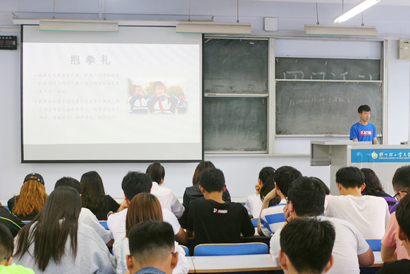 会议伊始,主持人向大家介绍了文明礼仪的重要意义,礼仪是个人立身处世的标准,是一个国家和民族道德风貌和社会进步的反应。紧接着,由梅雪同学带领大家朗读了一段《弟子规》,朗朗声中透漏出大家对深入学习礼仪知识的热切渴望。随后,祝贺军同学的一段演讲更是充分满足了大家对礼仪知识学习的愿望,在场的同学都认真聆听,求知若渴,活动在热烈掌声中落下帷幕。大家纷纷表示,通过道德讲堂的举办,从中学习到了很多,也会努力在生活中践行,做一个有礼有节的大学生,跟上新时代的步伐。