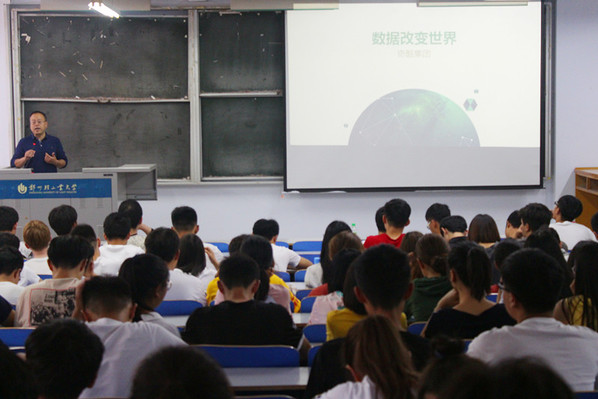 首先,耿经理向学生们介绍自己在大学生活中的经历,告诉学生们要懂得如何规划自己的学习,并在自己的人生路线中有一个好的职业;其次,他从大数据互联网的概念、大数据互联网的就业形势、大数据互联网的职业发展、学习方法四个方面出发来讲,中间穿插了现代生活与互联网密切相关的事例,例如物流与快递的关系、时代电商的影响等等;最后,耿经理结合国家政策,告诉同学们要推陈出新,利用好学校、社会提供的一切条件,响应国家“大众创业,万众创新”的号召,做一个敢创新、敢创业的新时代青年。
