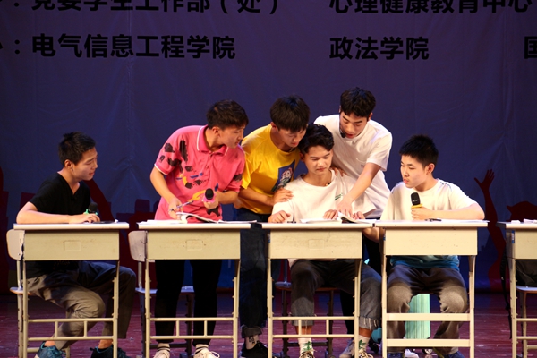 本次心理情景剧大赛以“青春·逐梦”为主题。比赛中,同学们从多个角度,诠释了在学习、生活、爱情、友情中的懵懂与困惑,涉及大学生常见的学习和生活压力、理想与现实差距、社会适应不良、人际交往过程中产生的困惑、价值观迷失等心理问题,深刻展现了人物丰富的内心世界转变历程,生动演绎了真实生活的心理冲突。最终,经过评委的认真评审,体育学院的《青春,你好吗》、外国语学院的《一个班长的成长故事》和电气信息工程学院的《理发》成功突入决赛。