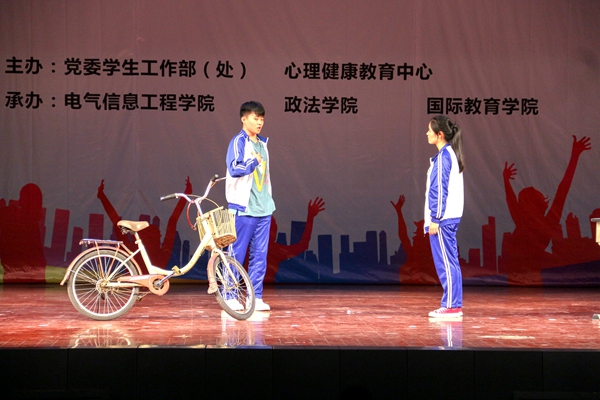 校园心理情景剧是我校5·25心理健康宣传月的系列活动之一。大赛坚持舞台情景剧的表演形式,通过真实再现大学生的学习和生活场景,剖析大学生面临的心理困惑,有效地宣传了心理健康知识。在本次心理情景剧大赛中,剧本内容贴近学生生活,形式生动活泼,展现了同学们将现实生活融入到创新的能力,进一步推进了学校文明校园建设。