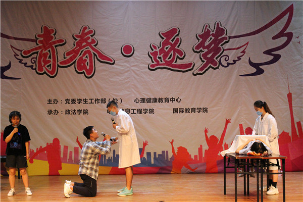 为进一步提升大学生心理素质,关注学生心理健康,第九届“青春•逐梦”心理情景剧大赛科学校区预赛于5月16日在三教楼208室成功举办。大赛由学工部(处)、心理健康教育中心主办,由政法学院承办,心理健康教育中心老师及各学院心理健康教育专职辅导员担任比赛评委,五百余名学生现场观看了比赛。