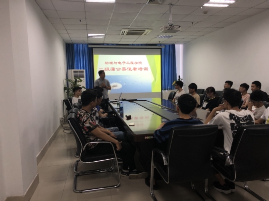 为进一步加强学院 “二级蒲公英使者” 管理,提升心理部成员、心理委员、宿舍心理信息员工作能力,按照学校心理健康教育中心统一部署,5月26日上午,物理与电子工程学院积极开展“二级蒲公英使者”培训工作,学院心理专职辅导员王冠玺老师、学院心理部成员、班级心理委员、宿舍心理信息员参加了此次培训。