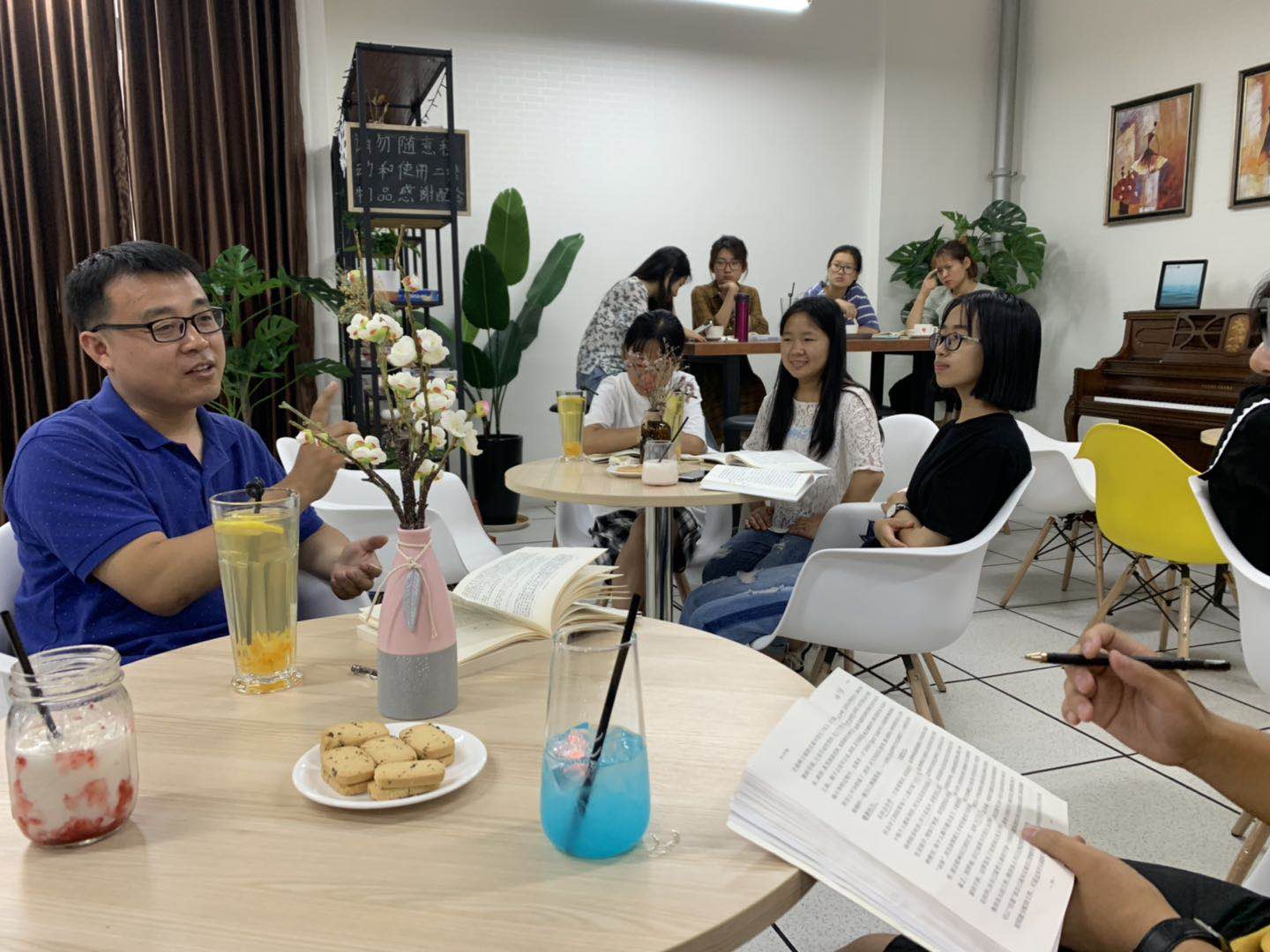 为提升学生综合素质,培养学生养成良好的阅读习惯,政法学院社会工作系于5月24日16:00至18:00在星空众创空间“乐吧咖啡屋”举办了本学期第九次读书会,社会工作系主任徐京波老师、分团委书记刘栩静老师和15名读书会成员参加了本次读书会。