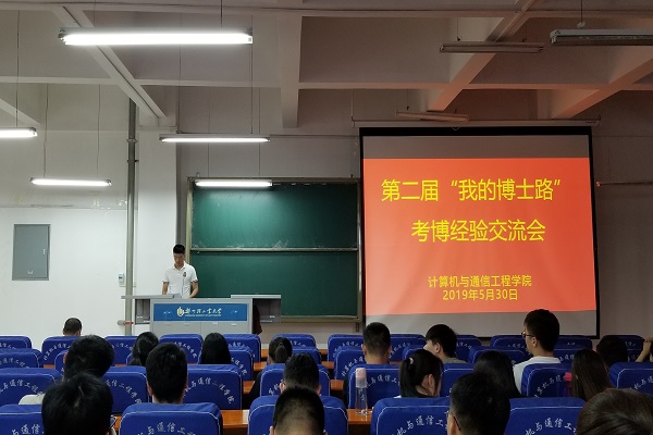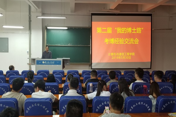 5月30日下午,计算机与通信工程学院在计算机楼217教室成功举办第二届“我的博士路”考博经验交流会。我院主管研究生教育副院长张素智,研究生党支部书记赵进超以及研究生辅导员孙梦遥和全体17级、18级研究生参加了此次讲座。