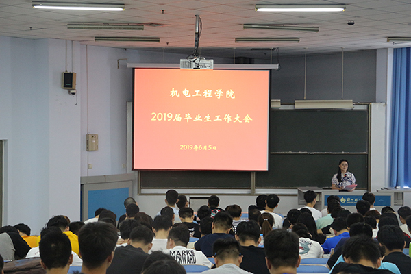 为促进毕业生文明离校工作的顺利开展,进一步指导学生办理离校手续,2019年6月5日上午九点,机电工程学院在教三楼202召开2019届毕业生工作大会,我院党总支副书记孙琳、负责就业工作的孔馨雨老师、毕业班辅导员及2019届全体毕业生参加此次大会。
