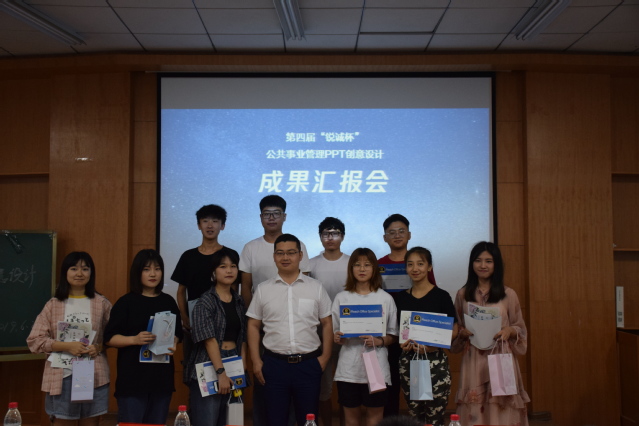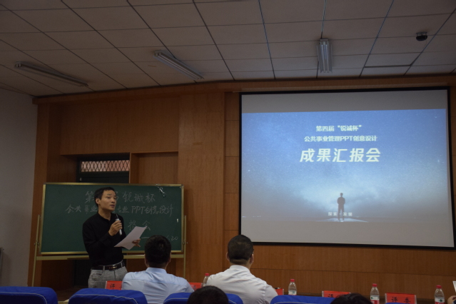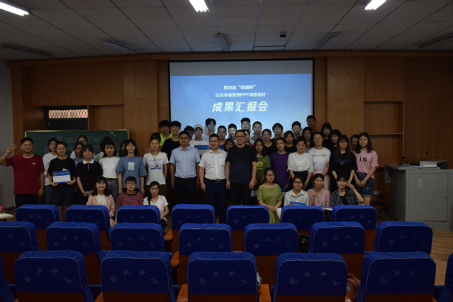基于该课程的学习,6月20日上午,政法学院在政法楼113报告厅成功举办第四届“锐诚杯”公共管理PPT创意设计成果汇报会,政法学院栗志强副院长,锐诚PPT创始人李镇江老师,公共事业管理系郝宏杰、刘晋、张绍阳、冯华超老师及公共事业管理专业18级学生参加汇报会。