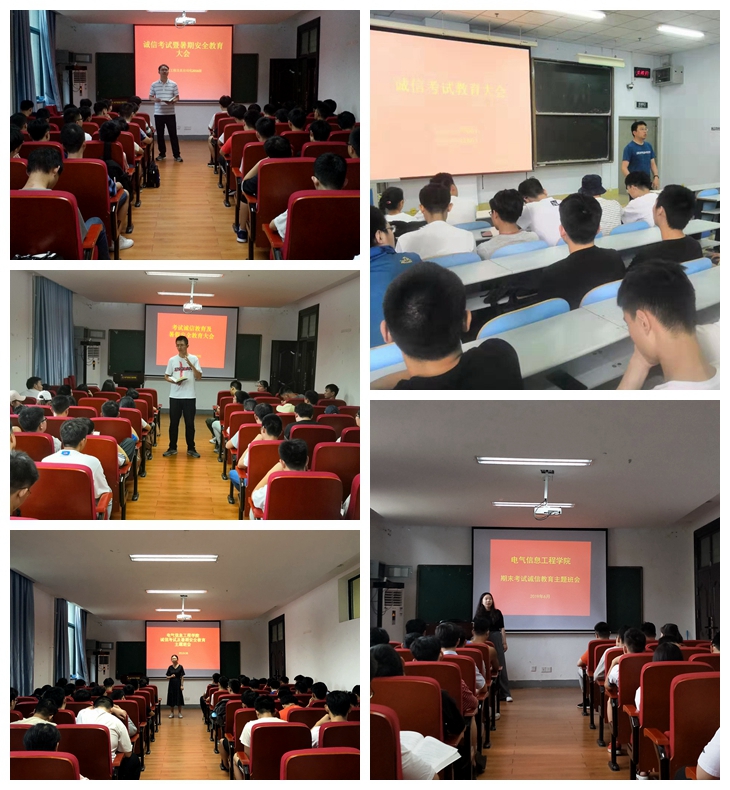 为加强学风建设,严肃考纪考风,督促同学们以积极的姿态备战期末,2019年6月24日-30日,电气信息工程学院分年级分专业开展诚信考试教育大会。