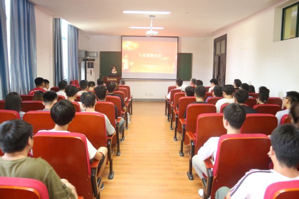 鲜红的党旗,醒目的横幅,有力地渲染庄重的气氛。全体师生奏唱《国际歌》,随后,学生党支部书记艾怡静带领预备党员进行入党宣誓,现场顿时响起激昂的宣誓声,面对着党旗,大家接受了一次身心的特殊洗礼。随后由16及学生张鸿飞同志代表全体预备党员进行发言,作为代表,他表达了自己要恪守在党旗下的诺言,严格要求自身,时刻保持共产党员的先进性和先锋模范带头作用,努力使自己成为一名优秀共产党员,牢记党章,踏实学习、工作,为共产主义事业奋斗终生。最后,高书记做总结,他在对本期新入党学生表示祝贺的同时,也提出了三点希望:一、希望广大学生党员铭记入党誓言,在今后继续保持对党的政治理论知识和党章内容的学习;二、坚持高标准严格要求自己,在日后的学习、工作、生活中做到带头作用;三、努力提高自身素养,为学院的进一步发展以及博士单位的建设作出贡献。