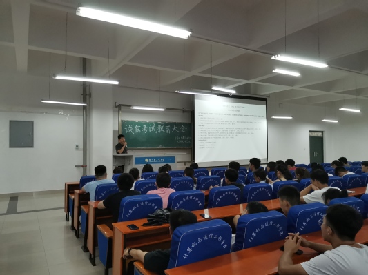 2019年7月1日中午12:00,计算机与通信工程学院(电子信息工程学院)在计算机楼217召开期末考试诚信教育大会,党总支副书记王艳军老师、分团委书记司丽娜老师、学工办主任孟牒老师等全体专职辅导员及我院各班级主要学生干部、学生代表200余人参与此次大会。