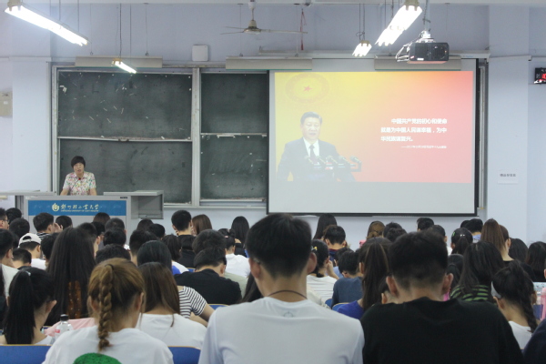 为落实立德树人根本任务,加强学生思想教育、提高学生政治素养,7月7日下午,数学与信息科学学院院长郭晓丽教授在东一楼218讲授了一场主题为 “不忘初心,牢记使命”的思想政治理论课,全体学生党员和入党积极分子参加本次学习。